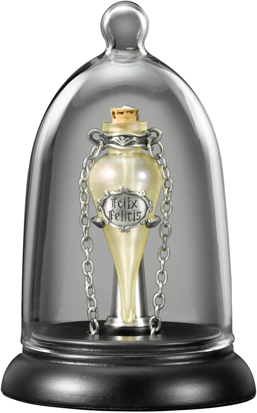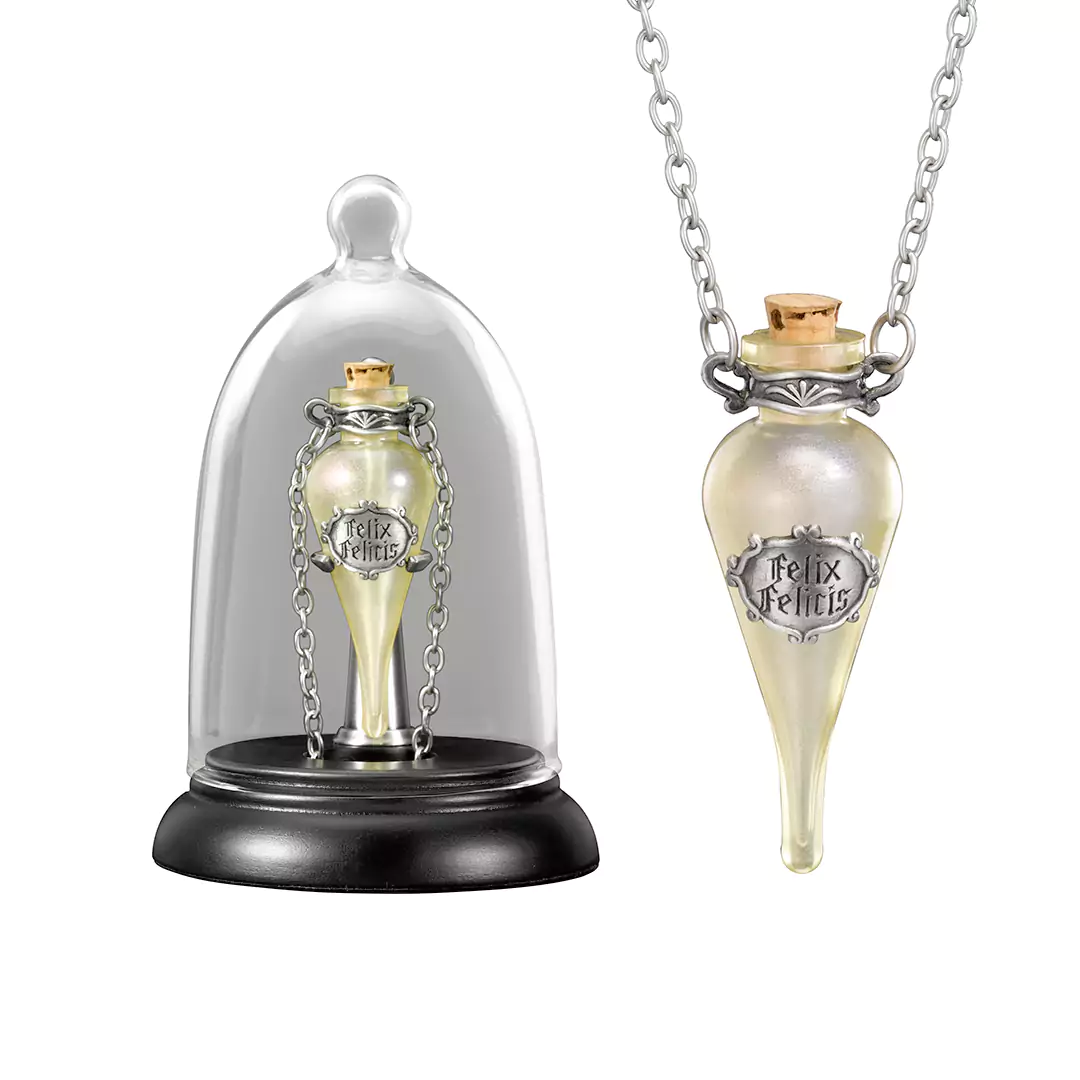 Entdecke die Magie der Zauberwelt von Harry Potter mit der beeindruckenden Replik eines Schmuckanhängers, kunstvoll ausgestellt in einer schmuckvollen Glasvitrine. Dieses elegante Sammlerstück bringt den Charme und die Raffinesse der Harry-Potter-Filme in deine Hände und verleiht deiner Sammlung einen Hauch von Magie. Die Schmuckanhänger-Replika ist originalgetreu einer kleinen Flasche Felix Felicis – also einer Phiole flüssigen Glücks – nachempfunden. Mit einer Liebe zum Detail, hochwertiger Verarbeitung und nostalgischen Charakter, ist die Replik ein Must-Have für alle sammelbegeisterten Fans!