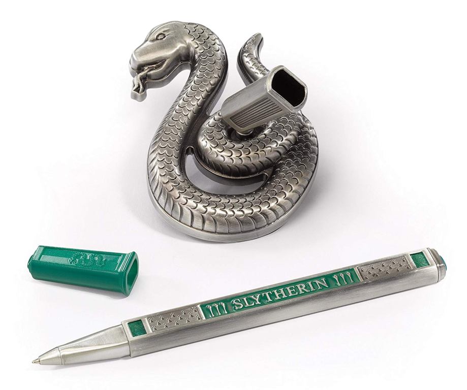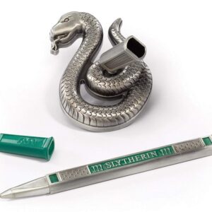 Tauche ein in die Welt der Magie und verleihe deinen Gedanken Flügel mit unserer exklusiven Auswahl an Harry-Potter-Schreibwaren. Ob Bleistift, Filzstift, Buntstift oder Kugelschreiber – unsere Kollektion bietet eine Vielzahl von Designs und Variationen. Jeder Kugelschreiber wurde mit höchster Präzision gefertigt, um ein reibungsloses und angenehmes Schreibgefühl zu gewährleisten. Die ikonischen Motive aus der magischen Welt werden kunstvoll in jedes Stück eingearbeitet und die Qualität verspricht eine lange Lebensdauer. Der hochwertige Stift kommt inklusive passenden Stiftehalter und ist in den charakteristischen Farben von Slytherin gehalten.