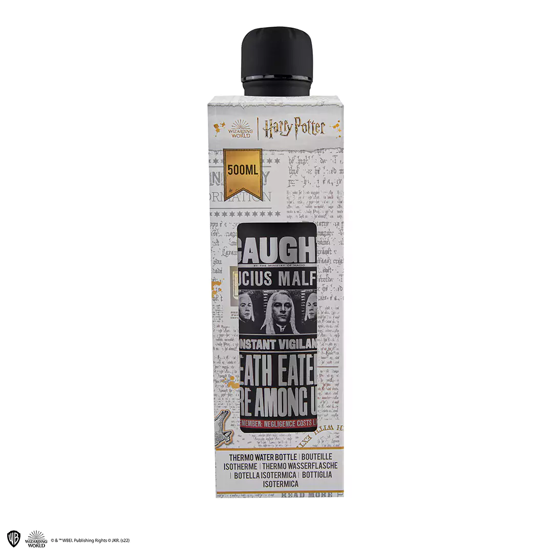 Jede Harry Potter Thermosflasche ist aus hochwertigem Edelstahl gefertigt, um eine robuste und langlebige Qualität zu gewährleisten. Sie ist darauf ausgelegt, deine Getränke warm oder kalt zu halten und dabei stets den unverkennbaren Stil von Lucius Malfoy zu repräsentieren. Das Design der Thermosflasche ist rund um das ikonische „Wanted-Lucius-Malfoy“-Poster gestaltet. Der auslaufsichere Verschluss sorgt dafür, dass du unterwegs keine Magie verschüttest. Verwende die Harry Potter Thermosflasche nicht nur für Wasser oder Getränke, sondern auch für Suppen, Tees oder Smoothies. Mit ihrer Wiederverwendbarkeit trägst du dazu bei, die Umwelt zu schonen und bleibst nebenbei bestens hydriert.