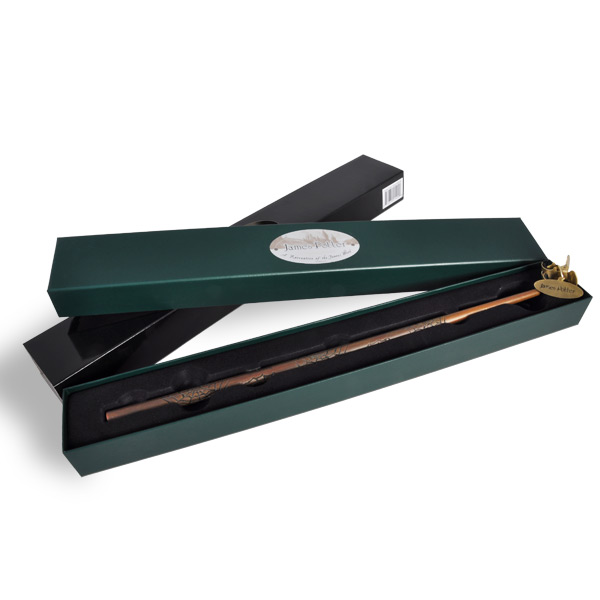 Alle Harry Potter Zauberstäbe sind detailgetreue Repliken der Stäbe die innerhalb der Filme Verwendung finden. Jeder Zauberstab wurde sorgfältig gefertigt um die einzigartigen Merkmale und das Design des Originals perfekt zu reproduzieren. Die hochwertige Verarbeitung sorgt für einen authentischen Look und ein angenehmes Gefühl in der Hand. Ob du ein Sammler von Harry Potter Repliken bist oder deinen Lieblingscharakter bei Cosplay oder Mottopartys verkörpern möchtest – diese Zauberstäbe sind ein absolutes Muss für jeden Fan. Den Zauberstab von „James Potter“ gibt es in der Collectors Edition aus den Harry Potter Filmen. Kommt in einer exklusiven Zauberstabpackung mit Samtpolster und Namensclip.